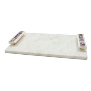 The tray is crafted out of a slab of genuine white marble and can be easily carried by the.
